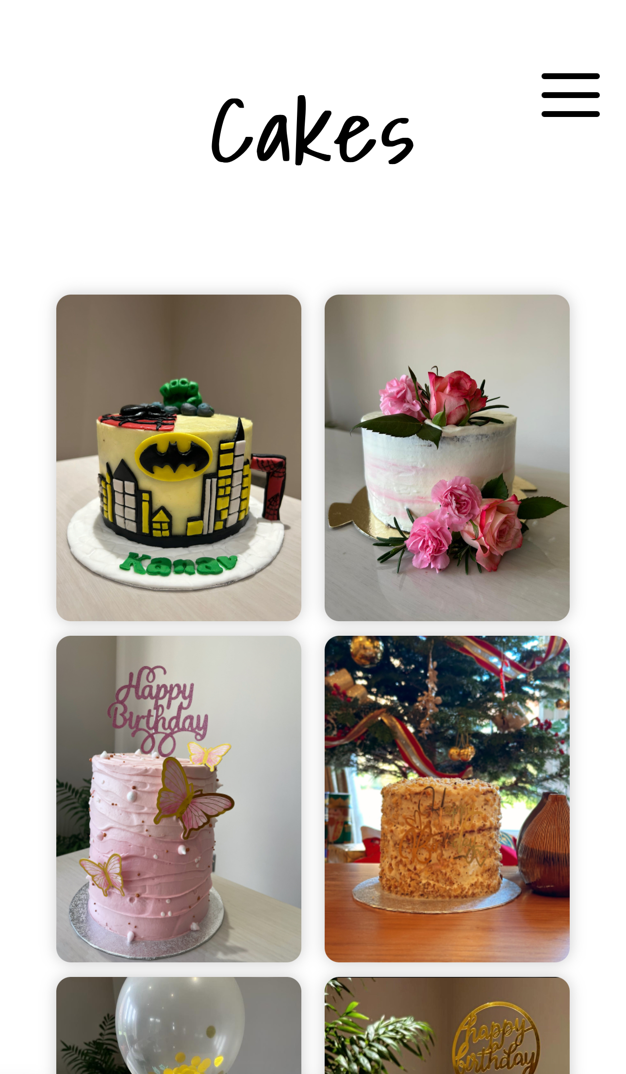 Upon selecting "See More" on the panels, customers are transported to a captivating new page showcasing an extensive array of previous cakes. Here, the meticulous craftsmanship and innovative designs of our products are proudly displayed, offering a glimpse into the creativity that defines our brand. Recognising the prevalent trend of mobile web browsing, I prioritised the seamless adaptation of the website to smaller screens. Employing JavaScript, I crafted a dynamic solution, introducing a sleek hamburger menu bar that elegantly prevents clutter at the top of the screen. Additionally, I implemented a user-friendly drop-down menu, offering intuitive navigation tailored specifically for mobile users. This meticulous approach ensures a seamless and enjoyable browsing experience across all devices.